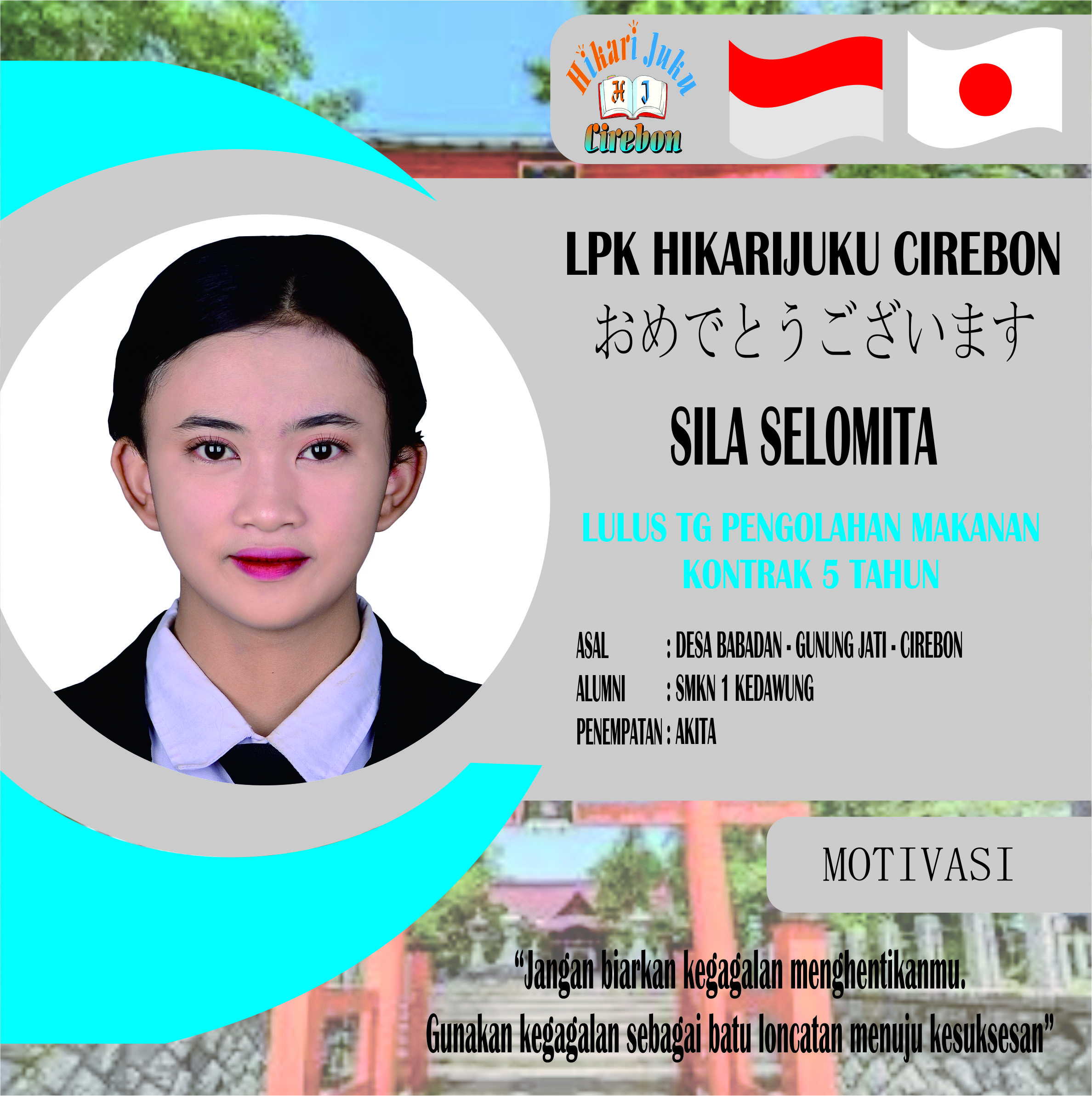 Siswa Tg Pengolahan Makanan LPK Hikarijuku Cirebon Lulus wawancara job 22 Dec 2025 | Oleh Ahmad admin lpk ← Kembali ke Daftar Berita